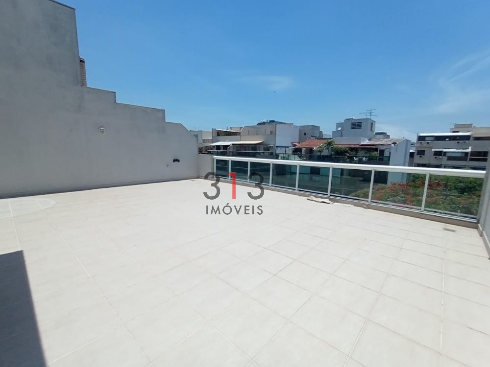 Excelente cobertura no Recreio dos Bandeirantes. 3 grandes suítes, salão para 2 ambientes, cozinha, área de serviço e dependência de empregada, grandes terraços frente e fundos. Com ótima iluminação natural e ventilado. Prédio com piscina, churrasqueira e salão de festas. Próximo a um vasto comercio e condução.
